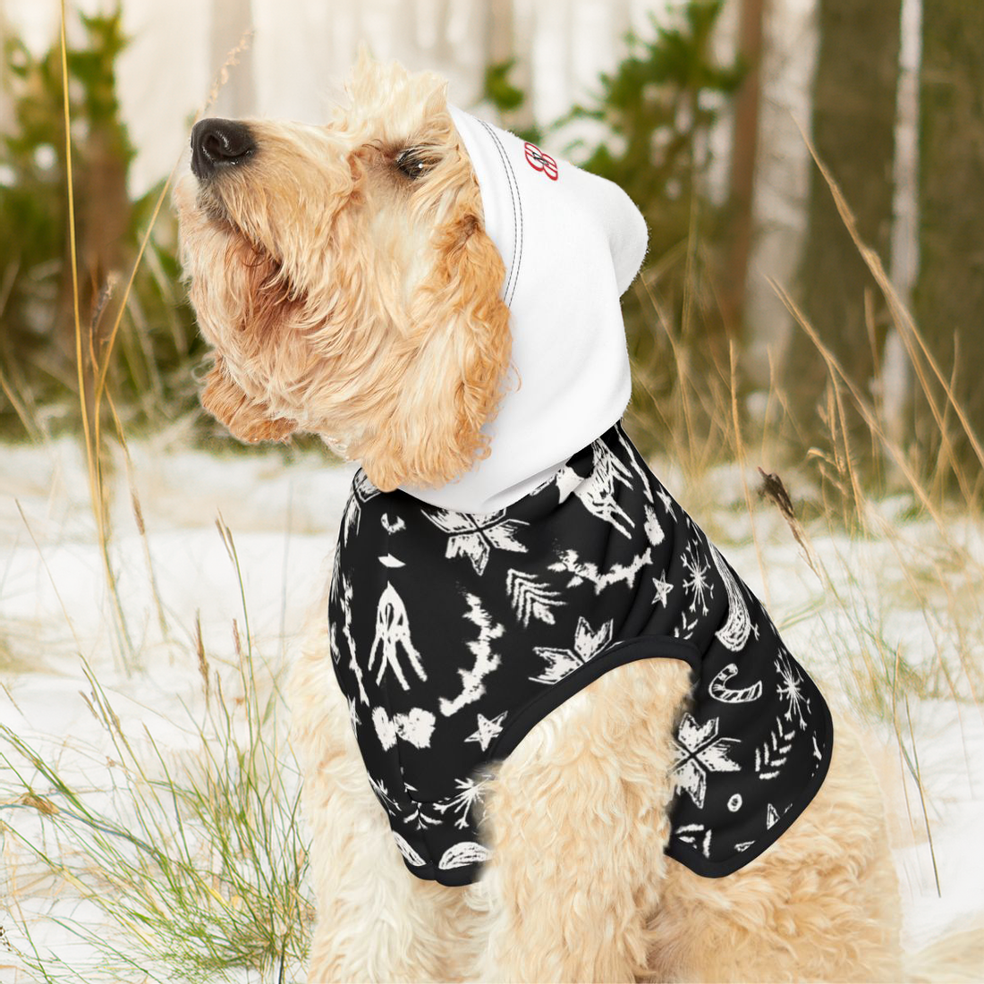Nordic Night Winter Pet Hoodie — Monochrome Fair Isle Holiday Hoodie for Dogs